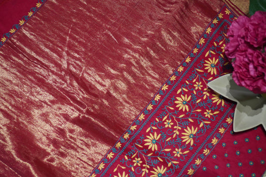 Chanderi with purple and green Chikankari embroidery on the kurta