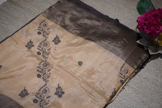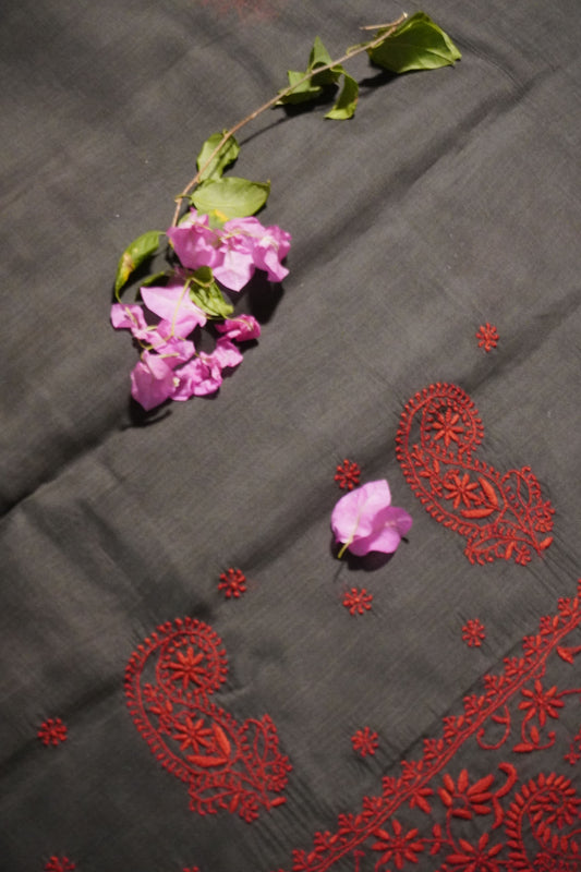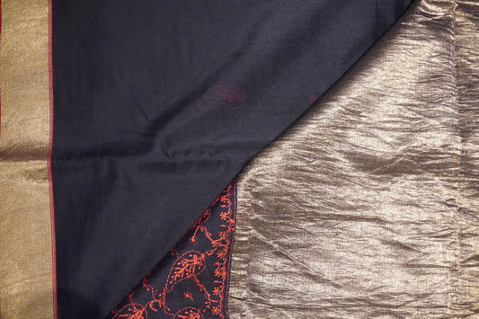 Chikankari Chanderi handloom black saree with complete hand embroidery